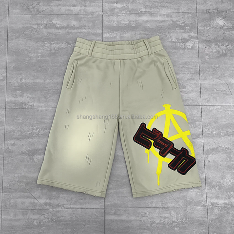 Guangzhou Shangshang Streetwear Personalizado Acid Wash Algodão Tela Impressão Hip Hop Streetwear Baggy Shorts