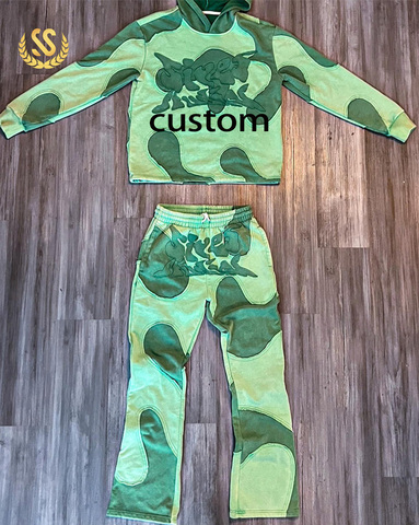 לוגו מותאם אישית סווטשירונים חומצה זיעה חליפות הדפסה מסך ערכת השרוול